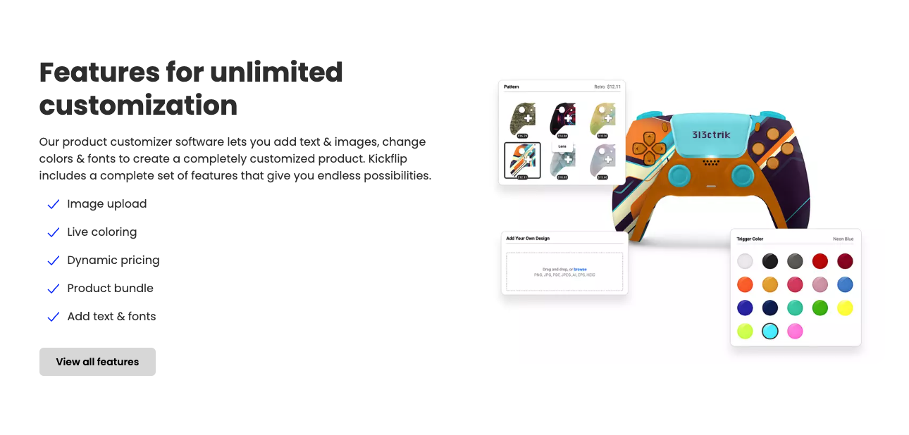 Kickflip creates product customizers for leading brands world-wide. Their tools integrate easily with the biggest e-commerce platforms like Shopify and WooCommerce, and they needed a marketing website to match the excellence of their SaaS services. They were looking for an agency with deep knowledge of both Storyblok and ReactJS, and after evaluating a number of the top agencies, they chose to work with Makers' Den. We were picked to build a best-in-class website to power their SEO, performance marketing and lead funnels.