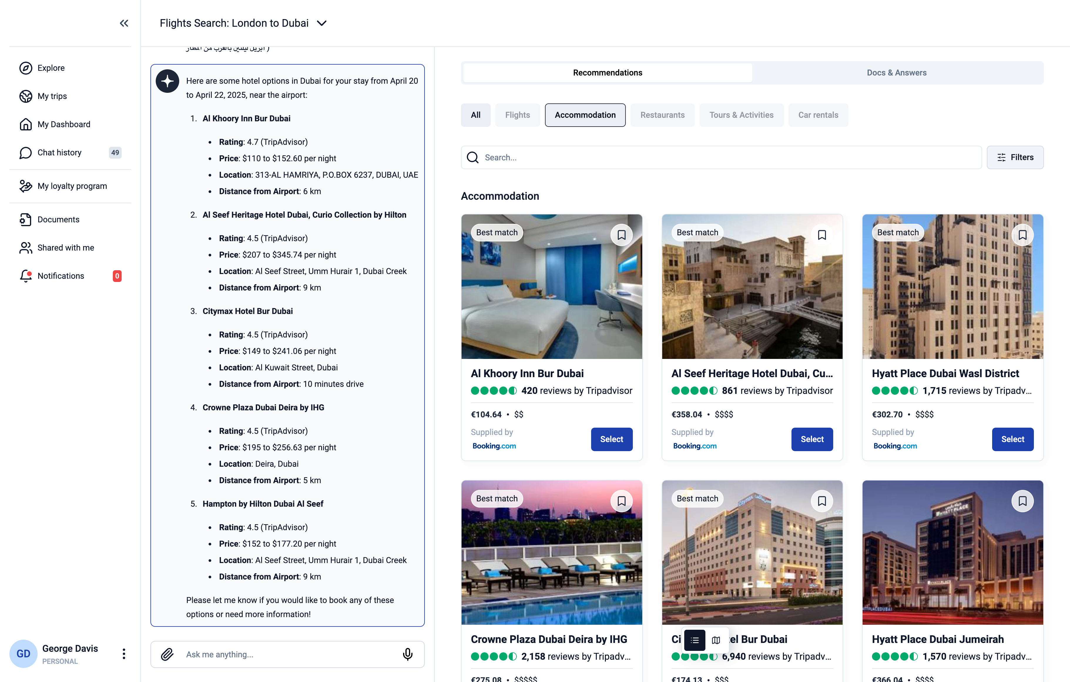 Dataiera creates a new paradigm of travel planning by merging flight aggregation and other travel options with artificial intelligence. The platform provides personalized recommendations and smart travel insights, enabling users to book their ideal trip effortlessly planning out their trip visually on a canvas or simply by conversing with an AI.