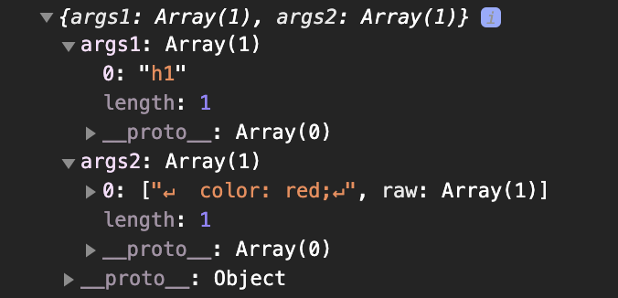 Recognizing the console.log, the first argument is the HTML tag (Tag) and the second argument is the array containing style strings (styleArr).