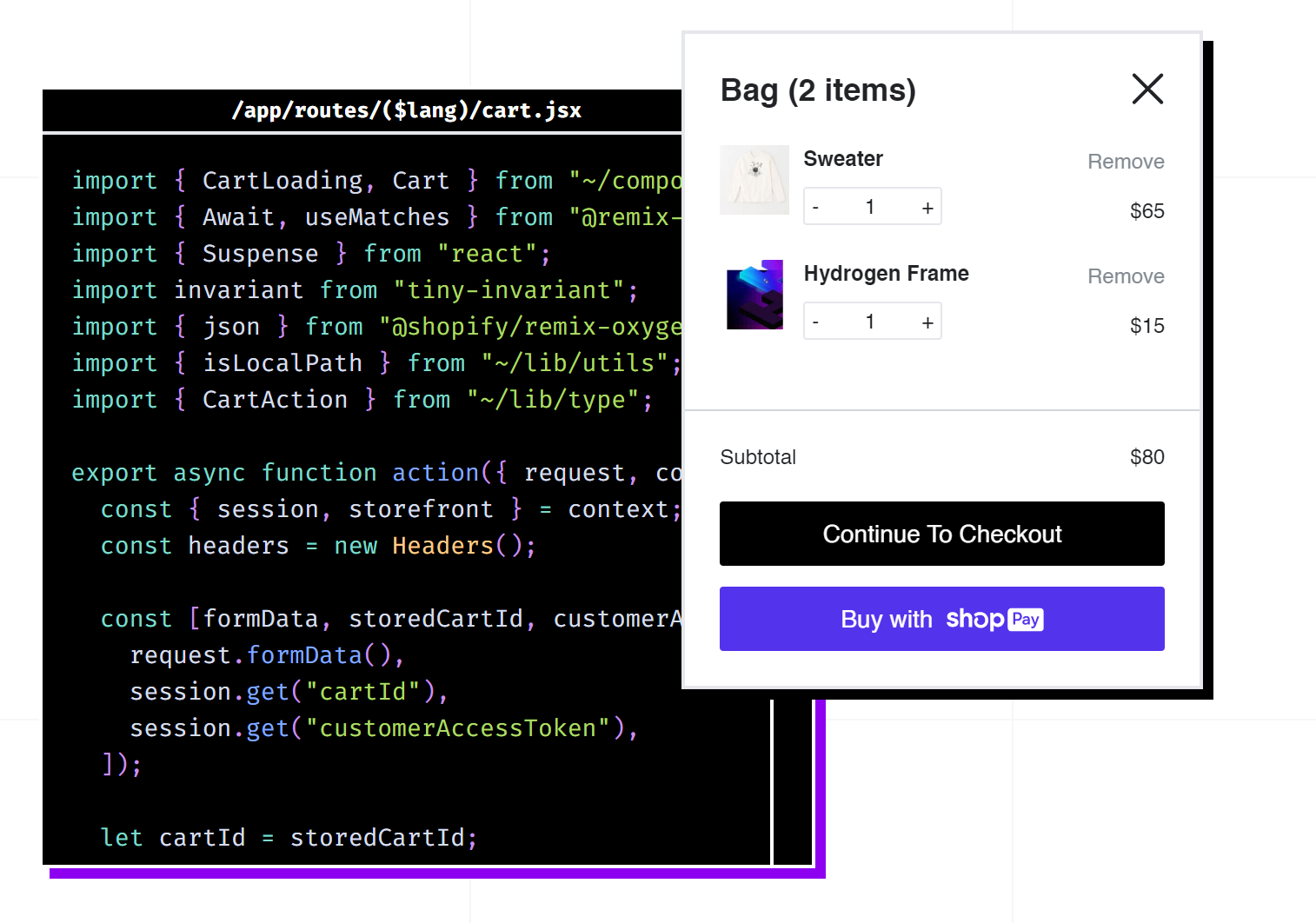 A hydrogen starter template: Cart (source: Shopify )